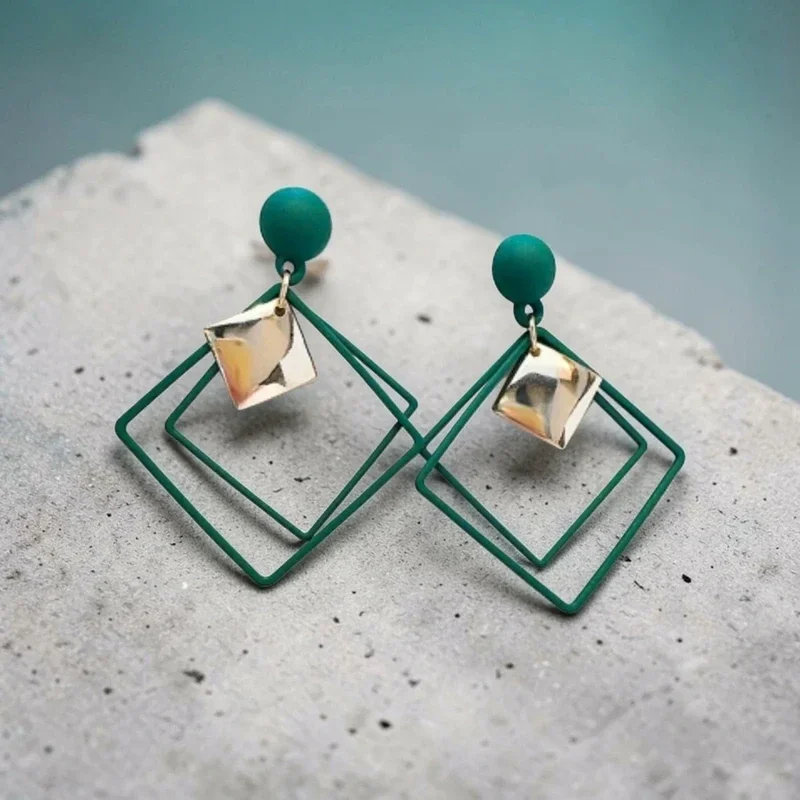 Boucles d’oreilles géométriques vertes – Style moderne & audacieux