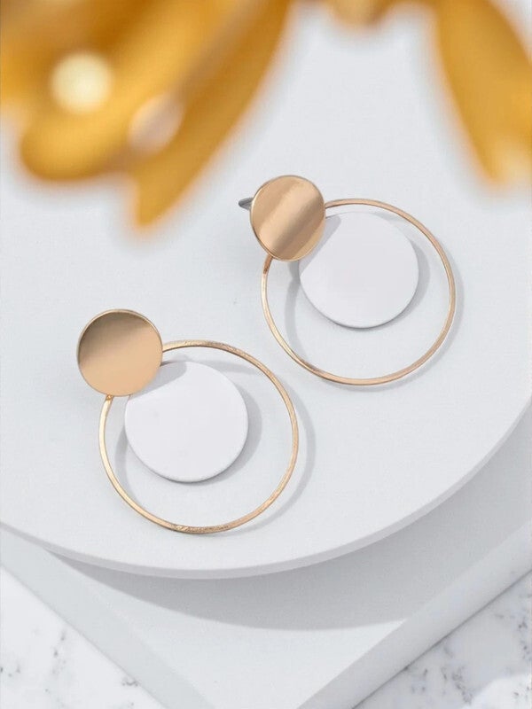 Ces boucles d'oreilles modernes allient élégance minimaliste et design contemporain. Chaque pièce se compose d'une petite plaque ronde dorée, qui sert de fixation, surmontée d’un cercle en métal de la même teinte, subtilement fin et léger. Suspendu à l’intérieur de ce cercle, un disque noir mat contraste harmonieusement avec la douceur du doré, créant un jeu de formes géométriques et de textures. La simplicité de leur silhouette leur confère une allure sophistiquée, idéale aussi bien pour une tenue de jour que pour une occasion spéciale. Leur design épuré, accentué par l'association du noir et du doré, leur donne une touche de chic discret tout en étant résolument tendance. Faciles à porter, ces boucles d'oreilles apportent une note de modernité et de raffinement à votre style, tout en étant confortables et légères. Un choix parfait pour celles qui apprécient la beauté dans la simplicité et l'élégance intemporelle.